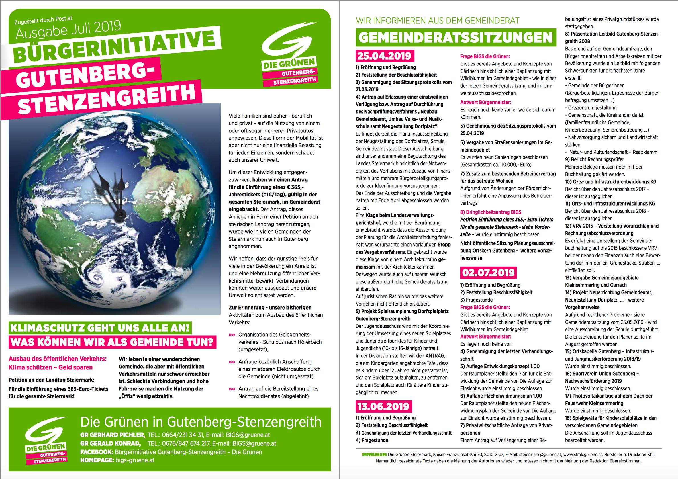 Von BIGS-Die Grünen anonymisiertes Protokoll der Gemeinderatssitzung vom 2.7.2019 in Gutenberg-Stenzengreith